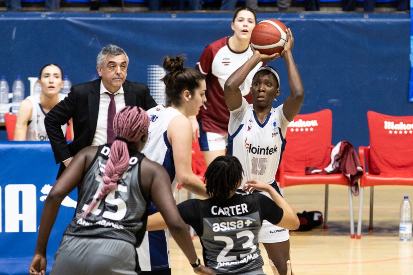 El marcador apenas se movía, un punto arriba, un punto abajo y así sucesivamente. La irrupción de Maria Espín con un triple y dos más uno colocó al Movistar Estudiantes con la máxima ventaja del partido: 7 puntos. Ello habla de la igualdad del choque durante los 40 minutos. El entrenador gernikarra era consciente de que en un duelo tan parejo cada parcial, por muy pequeño que fuese, podía ser decisivo. Con la entrada de Lashann Higgs el Lointek Gernika Bizkaia cogió aire, era darle el balón a la bahameña y encontraba la manera de generar juego, para anotar ella, para sacar faltas o para repartir asistencias. Aunque no se lograba sacar toda la rentabilidad posible desde la línea del 4,60 con un porcentaje final de 7 de 15. En estos partidos tan igualados cada pequeño detalle cuenta y son estos los que decantan la balanza para un lado u otro. Por ejemplo, lo que cerró la victoria de las madrileñas fue la antideportiva de la propia Higgs a falta de 9 segundos del final. Melisa Greter no perdonó en los tiros libres.