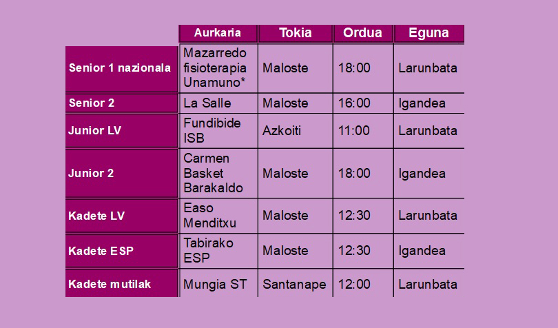 Las infantiles de Julen Gómez y las preinfantiles de Kipu se desplazarán al polideportivo Lasesarre para disputar el torneo Barakaldo Hiria. Estos partidos serán una buena piedra toque para medir el nivel de las jugadoras.