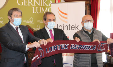 El staff técnico de la cantera del Lointek Gernika, con la colaboración de Laboral Kutxa