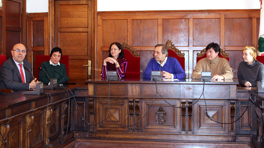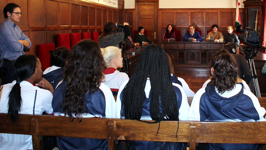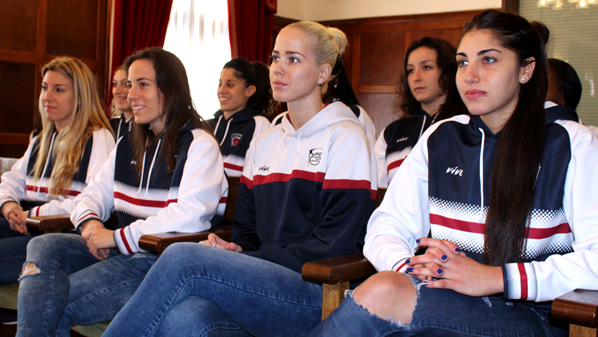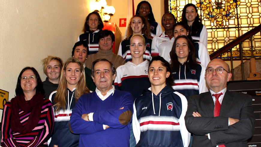 Este miércoles al mediodía, horas antes de la partida del Lointek Gernika Bizkaia hacia Girona para afrontar su participación en la Copa de la Reina, el alcalde José María Gorroño y una amplia representación de la corporación han querido recibir en el salón de plenos del Ayuntamiento de la villa foral a la plantilla y al Presidente del Gernika KESB Gerardo Candina.