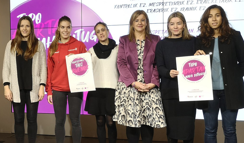 La Diputada Foral de Empleo, Inclusión Social e Igualdad, Teresa Laespada, ha presentado hoy públicamente esta campaña, que ha contado con la presencia de referentes del mundo del deporte femenino en Bizkaia como Juana Molina (Lointek Gernika, baloncesto), Ainhoa Zurinaga (Lutxana Arraun, remo), Anne Erauskin (Zuazo, balonmano), Ainhoa Tirapu (Athletic Club, fútbol) o Ixa Rodríguez (boxeo).