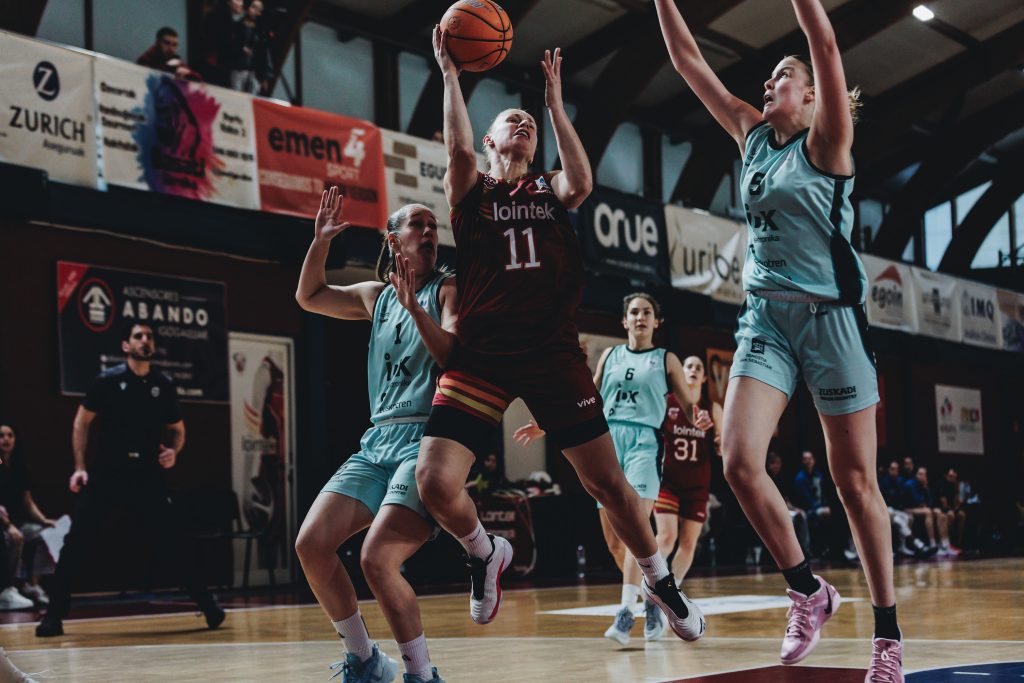 Con una Laura Westerik extra motivada ante su ex equipo, dos dos más uno en el primer periodo, y sobre todo bajo la batuta de una inconmensurable Itziar Ariztimuño el Lointek Gernika Bizkaia fue agrandando poco a poco la diferencia en el luminoso. Las gernikarras corrían al ritmo de la bilbaína que hacía y deshacía a su antojo. Su relevo lo cogió Elena Buenavida, siempre vertical al aro. Y es que la defensa visitante hacía aguas por todos lados, no había ayudas y era bandeja tras bandeja. Cuando las guipuzcoanas se colocaron en zona, las locales buscaron con paciencia y castigaron con el rebote ofensivo. Mención aparte la irrupción de las tres gernikarras al final del cuarto: Ane Olaeta, Marta Alberdi y Naia Zubiaga.