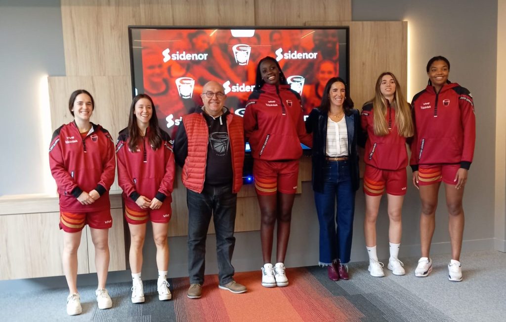 Firmaron el acuerdo Sara Jainaga, Directora de Sostenibilidad de Sidenor, y Gerardo Candina, presidente del Gernika KESB, en las instalaciones de Sidenor, en Basauri. También estuvieron presentes y acompañaron al presidente varias jugadoras del equipo de Liga Femenina Endesa y su entrenador Lucas Fernández.