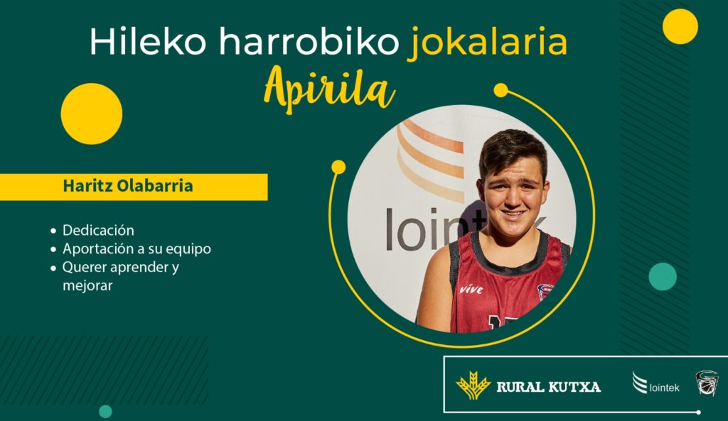 El primer jugador reconocido por su labor fue Alain Cenigaonaindia, en segundo lugar Amaiur Aurrekoetxea, después Yaiza Gonzalez, luego Alain Antón, Ivie Uyi John, Ane Madariaga y ahora es el turno de Haritz Olabarria. Es jugdor del cadete masculino del Lointek Gernika. Haritz destaca por su dedicación, aportación al equipo y su querer aprender y mejorar. Por todo ello, Haritz representa los valores de este Gernika KESB y Rural Kutxa y por eso es la jugadora Rural Kutxa de cantera del mes de marzo.