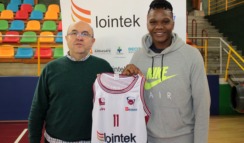 El jueves de madrugada aterrizó Leia Dongue en tierras bizkainas y el viernes por la mañana ya se ejercitó con el grupo. Foto oficial de la llegada junto al Presidente del Gernika KESB Gerardo Candina y vuelta al trabajo. Este sábado está de camino a Zaragoza con el resto del equipo con la intención de debutar ante el Mann Filter.