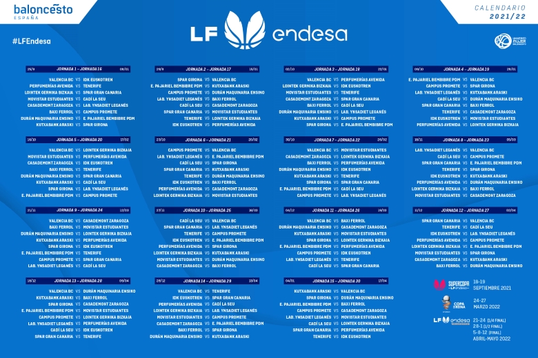 El Lointek Gernika Bizkaia ya tiene escrita su hoja de ruta de la Liga Femenina Endesa para la temporada 2021/2022. Hoy lunes se ha realizado el sorteo del calendario y en la primera jornada del fin de semana del 24-25 de septiembre el club gernikarra se enfrentará al Spar Gran Canaria en Maloste. El 4 de enero se cerrará la primera vuelta, la segunda el 17 de abril con la Copa de la Reina de Valencia del 24 al 27 de marzo.