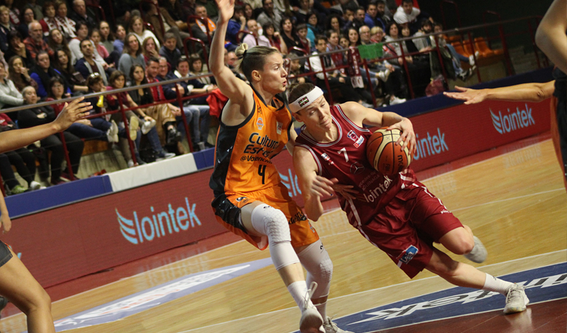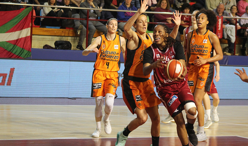 Y teníamos un nuevo partido. Uno en el que cada balón era ya una batalla y media vida, en el que a cada acción el cuero pesaba y quemaba más en las manos. Se precipitó el Lointek, no entraron ni el triple de Nacikaite ni el contraataque de Williams y Abalde, que estaba de dulce, tiró de las suyas hacia el 60-65 (min.35). Momento crítico que salvó en primer instancia Williams pero se complicaría más porque entraron los nervios en ataque, malas selecciones, balones perdidos y las Abalde, Gómez y Pina sumaban hacia el 64-71 con menos de 2 minutos por delante. Erró el Lointek equivocando ser agresivas con cargarse de faltas y llevar a la línea de tiros libres al Valencia Basket. En ataque se pecó de individualismo y se escapó la victoria.
