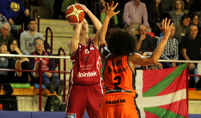 Se recondujo la situación con Vanderwal asumiendo la responsabilidad ofensiva toda vez que Williams estaba atada en corto. Cinco puntos de la base canadiense fueron la chispa que necesitó el Lointek para meterse en partido a ritmo de triple con Berezhynska y Nacikaite acertando desde el perímetro para igualar la contienda a 13. Circuló con criterio y fluido el conjunto gernikarra en este tramo, se aplicó atrás, el Valencia Basket, cargada también de faltas Pina, fue perdiendo efectividad y el Lointek se pegaba un festival de triples: otro más de Vanderwal, se sumó a la fiesta Banham y en total 5 dianas en este período. Las rotaciones funcionaban y ellas dejaron el +5 al final del primer cuarto.
