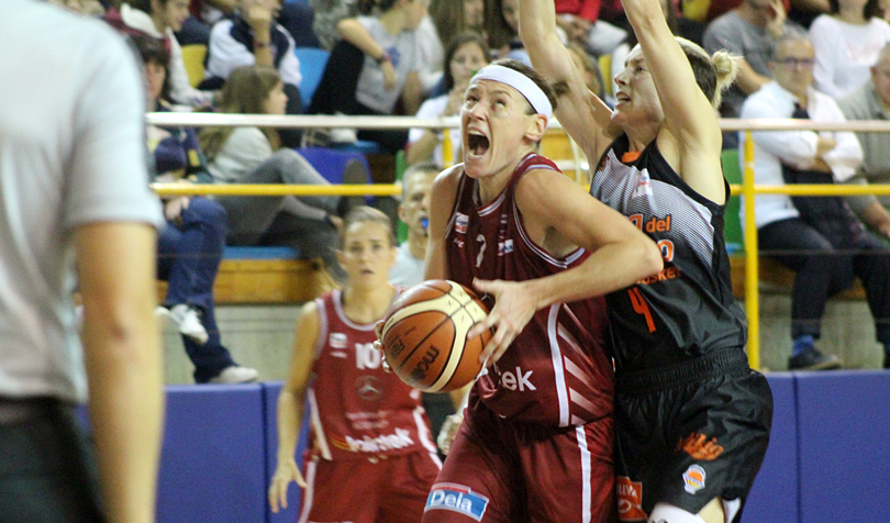 Y seguía la batalla en la reanudación. Ahora los dos equipos se daban más alegrías ofensivas, aunque no muchas. Zoneó el Valencia Basket y Berezhynska demostró su buena mano. Necesitaba el Lointek de la ucraniana y ésta respondió por partida doble. Abalde estaba también de dulce en el otro aro y por eso el partido se equilibraba continuamente. Triple de Naiara Díez para alegría de un Maloste que apretaba, 40-36.