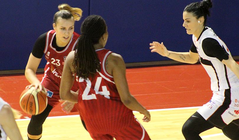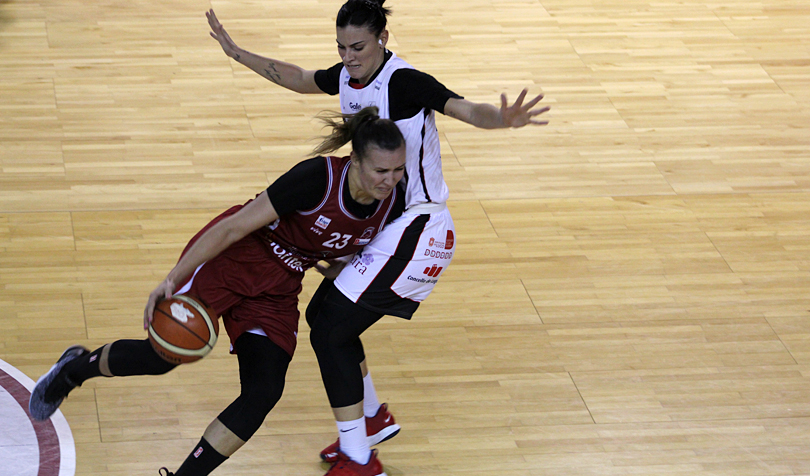 Amenazó con romper el partido el Lointek en este tramo que se mantuvo en rentas por encima de la veintena  con acierto lejano y 7 puntos consecutivos de Berezhynska. Fluidez, acierto, contraataque, anticipación defensiva…todo hacía pensar que el choque se rompería. Pero el Ensino es un equipo con mucho carácter y argumentos como para revertir una situación adversa. La solución eran los tiros de tres puntos. O’Dwyer y Tagliamento estuvieron muy finas desde la larga distancia y con 2 triples de cada una metieron a las suyas en partido.