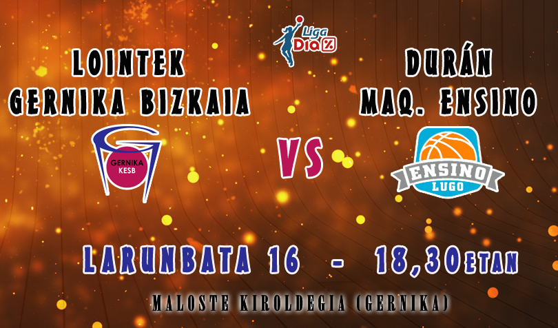 Este sábado a las 18,30 horas en el Pabellón de Maloste, vigésima jornada de la Liga  Dia que enfrenta al Lointek Gernika Bizkaia y al Durán Maquinaria Ensino. Segundo ‘match ball’ para el equipo de gernikarra de firmar su presencia metemática en los play-offs, justo donde quiere estar el equipo que gallego que pese a ser un recién ascendido está completando una gran temporada y está justo en la frontera de la lucha por el título. Estos dos equipos apuestan decididamente por el juego ofensivo, son el tercer y cuarto mejor ataque de la competición y el espectáculo está asegurado.