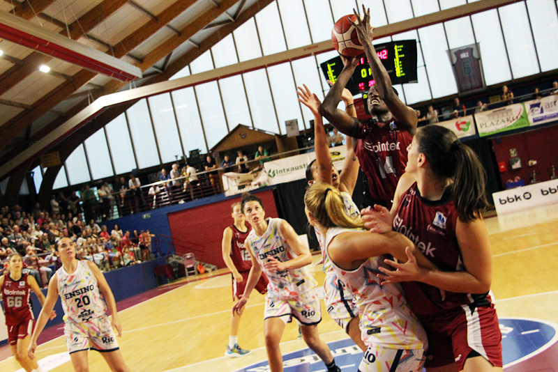 En la vuelta al choque el Ensino ajustó aún más el marcador, 31-30. Da Silva luchaba en la pintura, las gallegas seguían el ritmo de la batuta de Olaeta y se colocaban por delante, 35-36. Pero el Lointek no tardó en encontrar la verticalidad necesaria para sumar. Las penetraciones de Berger y Buch intercaladas con los tiros de Madera y el trabajo en la pintura de Da Silva no tardó en dar sus réditos en el marcador, 51-42 (min.29). Un 2+1 de la pívot portuguesa sobre la bocina elevó la renta a la máxima del encuentro, 54-42, con la que se afrontaría el último cuarto.