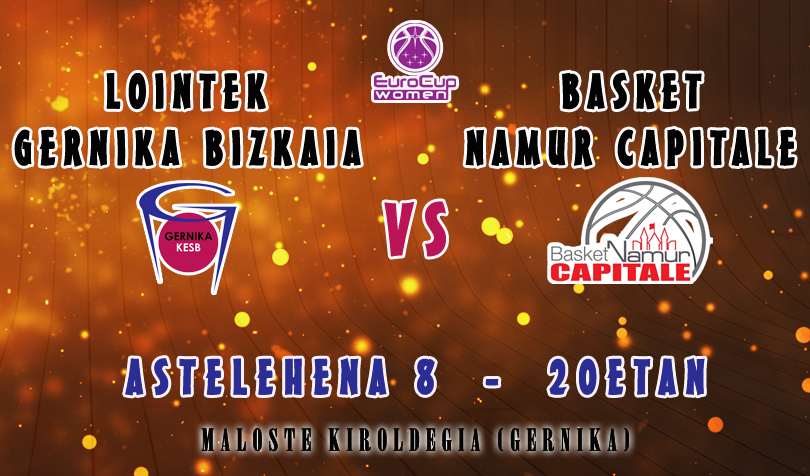 Por primera vez en la historia Gernika-Lumo acoge un encuentro de EuroCup. Será este lunes día 8. Encuentro crucial en las aspiraciones europeas del Lointek Gernika Bizkaia. Se trata de la Fase Previa. Una eliminatoria a doble vuelta en la que el ganador accederá a la Fase de Grupos. El rival, el Basket Namur Capitale, un conjunto belga que lleva participando en EuroCup todas las temporadas de manera consecutiva desde 2009.