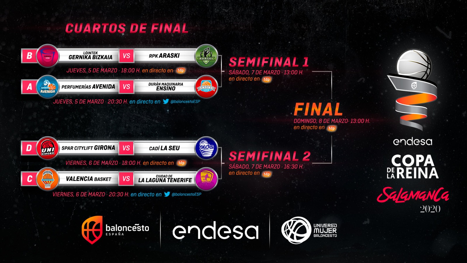 La buena noticia es que el Lointek Gernika Bizkaia jugaría el jueves 5 de marzo a las 18 horas con lo que en caso de superar la eliminatoria de cuartos tendría margen de descanso hasta el sábado para afrontar las semifinales que se disputarían a las 13 horas. Por lo establecido por la FEB, todos los encuentros del Lointek Gernika Bizkaia se podrán ver en directo por Teledeporte.