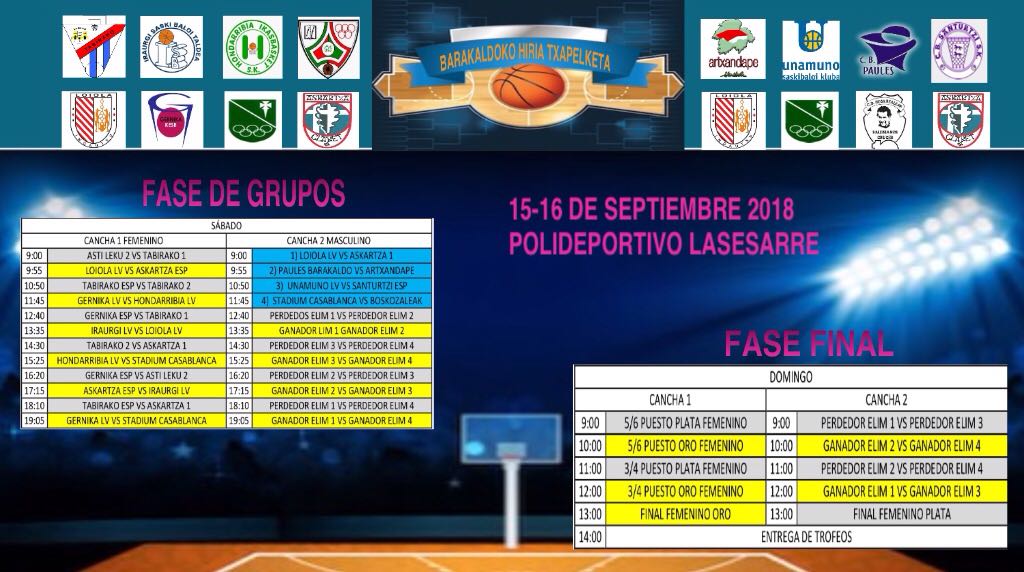 Los cadetes femeninos  de Liga Vasca y Especial trasladarse al polideportivo Lasesarre para la disputa del torneo Barakaldoko Hiria Txapelketa. Los equipos dirigidos por Mikel Retolaza y Aiert Uribe comienzan la semana que viene la liga y este torneo les servirá para ver donde están en cuanto a las sensaciones se refiere. En Lasesarre se encontrarán con conjuntos de mucho nivel por lo que será una buena piedra de toque. Incluso acude a este torneo el Stadium Casablanca aragonés, un clásico de categorías de formación a nivel estatal.