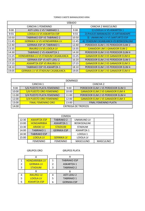 El cadete especial jugará en la división de plata en el grupo B junto con Asti Leku y Tabirako 1, a las 16:20 y 12:40 respectivamente. En el grupo A se encuentran el Tabirako ESP, Tabirako 2 y Askartza 1. Al igual que en la división Oro los partidos dominicales dependerán de los resultados de la fase de grupos.