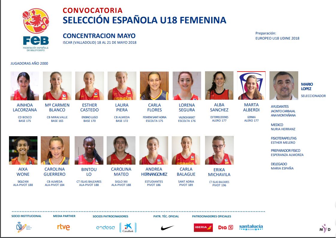 Marta Alberdi jugadora del equipo junior ha sido convocada entre las 15 mejores de su edad por el gabinete técnico de la FEB. Estará en la concentración que se llevará a cabo en la localidad este próximo fin de semana.