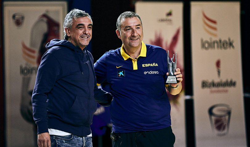Más de 90 minutos estuvo Miguel Méndez ofreciendo perlas en relación al trabajo defensivo y al finalizar el entrenador del Lointek Gernika Bizkaia, Mario López, le hizo entrega del trofeo conmemorativo del 25 aniversario, ‘arbola’.