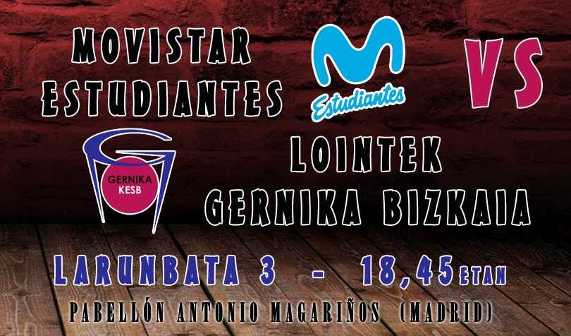 Respeto. Mucho respeto al Movistar Estudiantes. Pero si el Lointek Gernika Bizkaia quiere jugar los play-offs por el título de la Liga Dia no puede fallar en su visita al colista de este sábado en el mítico Magariños. Las colegiales van a tratar que ese sea un día festivo en el entorno de celebración de su 70 aniversario. Así que no será fácil para las gernikarras. El seguidor podrá disfrutarlo o sufrirlo este sábado por Teledeporte a las 18,45 horas.