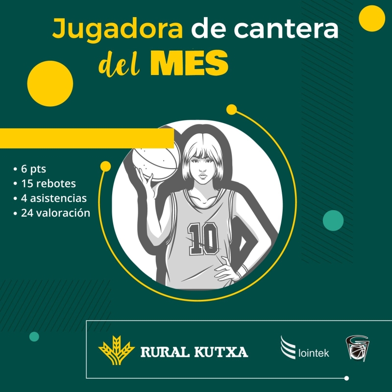 Y ahora, todas las jugadoras y jugadores de los equipos del Lointek Gernika, desde categoría Senior a Infantil, pueden ser nombrados Jugador/a de Cantera del Mes. ¿Y eso qué supone? Pues más allá del honor de ser nombrada él o la mejor del mes, también recibirá un obsequio de un bono regalo de 150 euros para gastar en la Tienda Oficial del club, Kipu Kirol Denda. Gracias a la colaboración de Rural Kutxa el o la Jugadora del Lointek Gernika que mejor ejemplifiquen los valores de solidaridad, esfuerzo, trabajo, compromiso y, cómo no, combinado con sus habilidades baloncestísticas, tendrá dicho reconocimiento.
