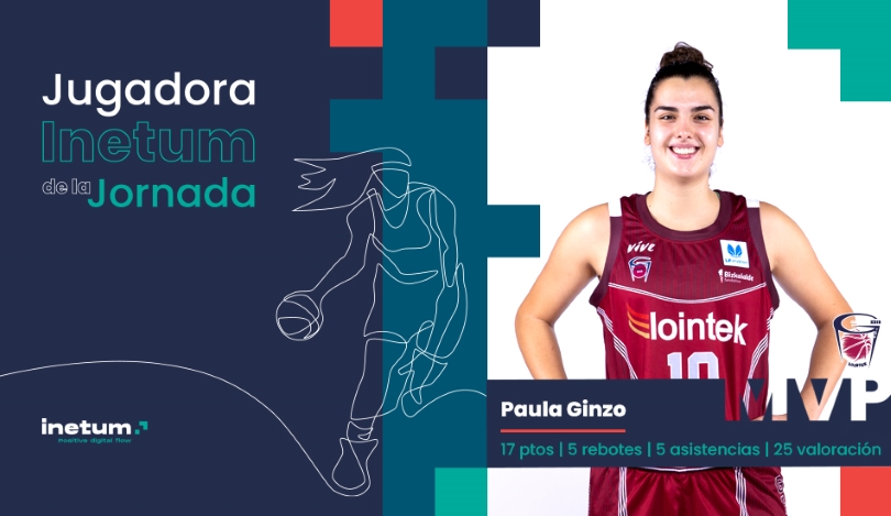 Paula Ginzo izan da Emakumezkoen Endesa Ligako 23. jardunaldiko Inetum jokalaria. Pibotak 17 puntu sartu zituen, 5 errebote jaso zituen eta 5 asistentzia banatu, guztira 25eko balorazioa, BAXI Ferrolen aurka.
