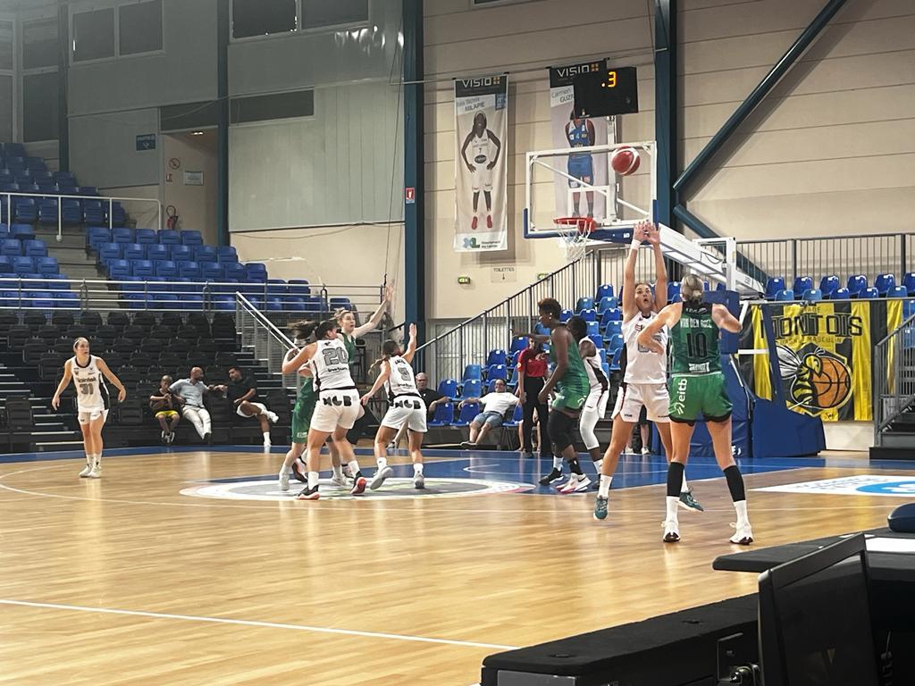 Un derbi euskaldun siempre es especial, da igual que tanto el Lointek Gernika Bizkaia como el Kutxabank Araski estén en construcción. Incluso que hasta sea lejos de Euskal Herria, ya habrá tiempo para ello a partir del jueves en la Euskal Kopa de Durango. Las gernikarras salieron de inicio con la recién llegada Sara Madera en su primer encuentro con la nueva elástica. Completaron el quinteto Itziar Ariztimuño, Angie Bjorklund, Gabby Nikitinaite y Marie Michelle Milapie. De hecho, la interior italiana no tardó en anotar sus primeras canastas, anotó 4 puntos en el primer periodo. Pero la que empezó muy entonada fue Bjorklund con 7 puntos hasta cerrar el primer cuarto con el 18-11. El inicio de encuentro fue mucho más positivo que en el día anterior ante el Basket Landes. Al final la llegada de otra jugadora se nota, aún más en el escaso juego interior gernikarra. Con el paso de los minutos las jugadoras se fueron repartiendo los minutos, no hubo tantos impedimentos de faltas personales como ante las galas. Aún así, las gasteiztarras contaban con mayor rotación con la plantilla prácticamente al completo. Por ejemplo, la entrada en cancha de Sami Hill les dio a las alavesas otro ritmo, sobre todo en la anotación: se fue con 11 puntos al descanso. El Lointek Gernika Bizkaia se cargó de nuevo de faltas y con las piernas cada vez más cansadas, la anotación bajó. La única entonada era Rosó Buch que se marchó al vestuario con 11 puntos en su casillero personal. No era suficiente, Araski le había dado la vuelta al luminoso en Mont de Marsan hasta el 33-37.