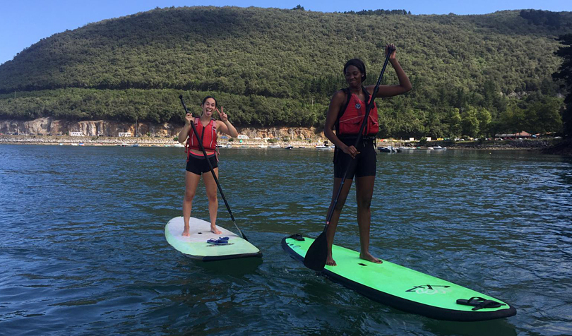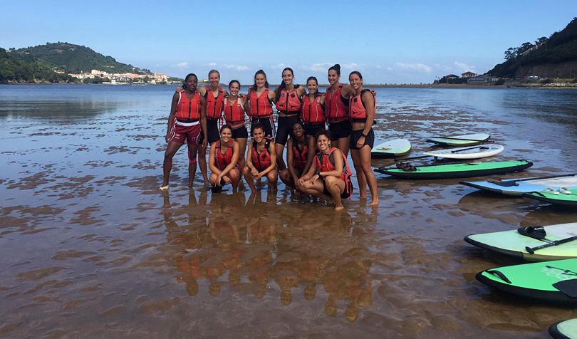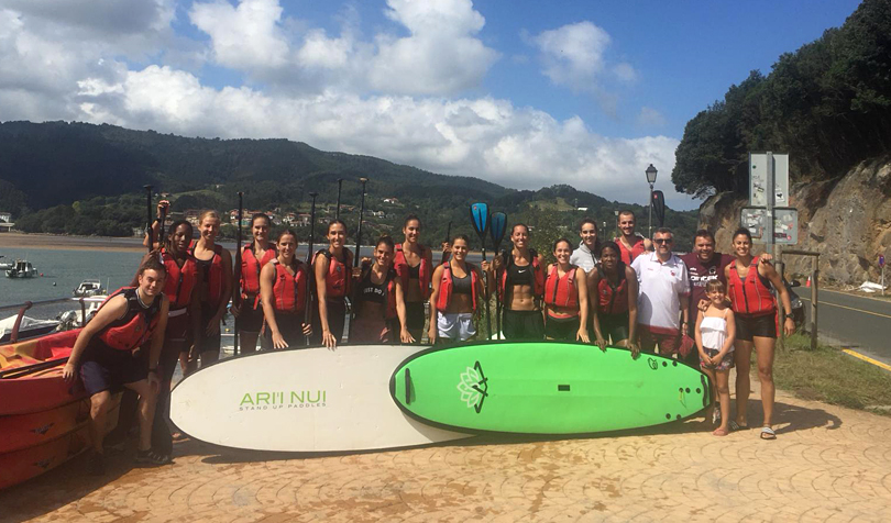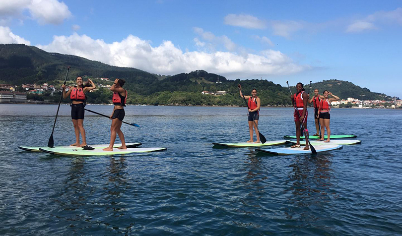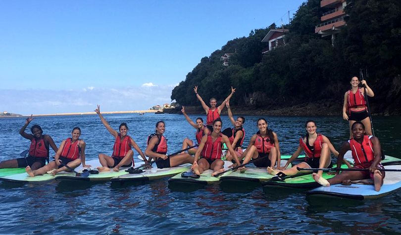 Tras una serie de ejercicios físicos en la arena, seguidamente las jugadoras, junto al preparador físico y al fisioterapeuta Iñaki Rafael, tuvieron la oportunidad de hacer Paddle Surf. Algunas mostraron más destreza que otras encima de la tabla pero lo cierto es que realizaron todas el trayecto  y disfrutaron de una jornada excelente en un marco bellísimo como lo es Urdaibai. Un aperitivo para recuperar fuerzas y esta tarde vuelta al trabajo.[:]