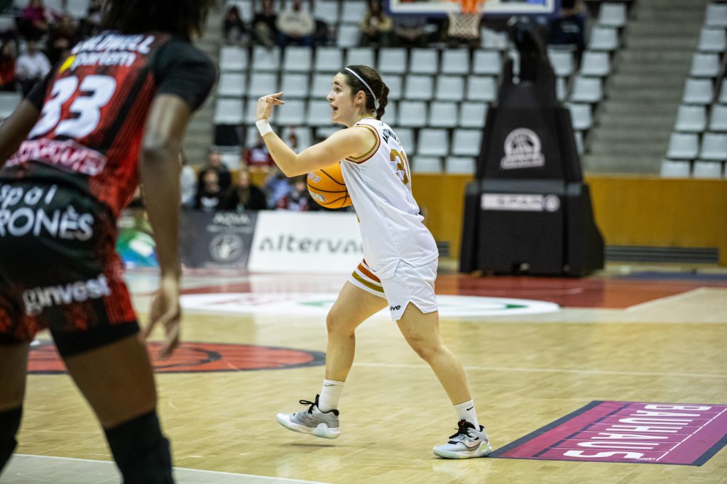 Sobre todo de la mano de Chloe Bibby, que ya comenzaba a hacer de las suyas. Roberto Iñiguez había aprovechado bien la semana para ir recuperando a jugadoras importantes como Vionise Pierre Louis. Además, la noticia positiva del día fue volver a ver a Ainhoa López vestida de corto y realizando la rueda de calentamiento. La pívot hizo daño desde que saltó a pista con su corpulencia. El partido había cambiado de signo, aunque Lucas Fernández quiso igualar la jugada colocando a Mikayla Pivec al ‘4’. Un nuevo triple, cuatro al descanso de Bibby, lanzó al Uni Girona hasta el 28-21 con 16 puntos de la americana. Los errores en defensa, sobre todo de comunicación, de las de la villa foral, no las perdonaban las catalanas aumentando la diferencia hasta el 41-27.