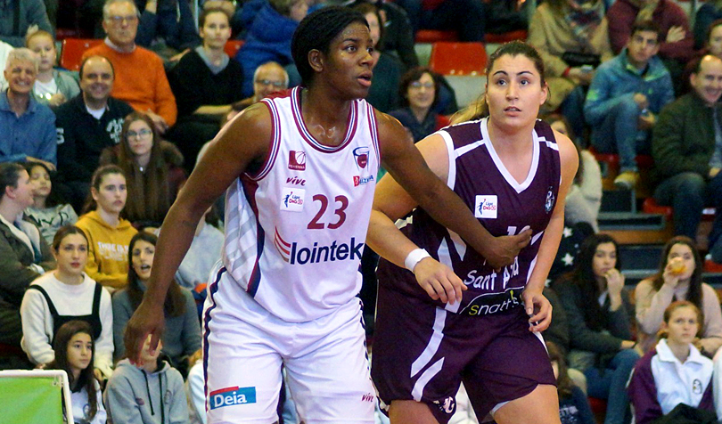 El tercer problema, la lesión de Gastaminza en la tercera posesión del segundo período. La tercera pieza que caía en el Lointek en posiciones interiores. María Pina al ‘4’. Pese a todo, parcial de 0-9 para las gernikarras. El triple de Pina y el robo y contraataque de Molina forzaron el tiempo muerto local (21-22). Nuevo triple de Molina para ampliar el parcial a 0-12. Anuló casi durante 5 minutos el Lointek al Sant Adriá. Arrojo pasaba desapercibida, Coulibaly discreta y tampoco dejaban las bizkainas brillar a Riley. Hasta que no le llegaron balones a Reisingerova las catalanas no anotaron. El ritmo lo marcó el Lointek con una gran defensa zonal, Yaiza Lázaro se recuperó para mantener a las suyas por delante en el luminoso. Y curioso dato que para el descanso el equipo gernikarra sólo lanzó un tiro libre pese a la verticalidad que mostró el equipo y la cantidad de balones interiores que jugó. Cierto también que el Sant Adriá sólo lanzó 3.