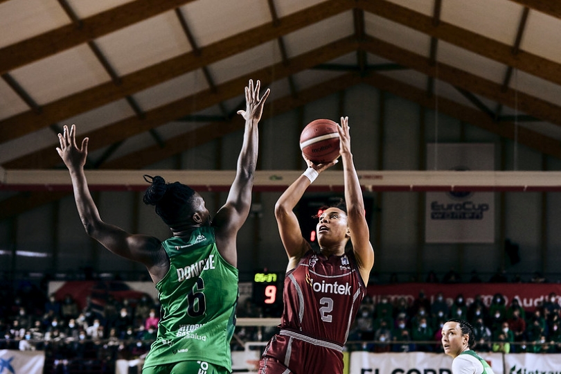 El Kutxabank Araski también anda necesitado de victorias. Ahora mismo están fuera de las posiciones de playoffs, en la undécima posición de la tabla, con un balance de 9 victorias y 14 derrotas. Las gasteiztarras tienen en el punto de mira la postemporada ya que se vieron apeadas del gran primer objetivo de la pretemporada: La Copa de la Reina. Made Urieta dio en verano un giro a su proyecto con jugadoras más desequilibrantes para un estilo de juego más anárquico. Ese cambio es un proceso en el que todavía están trabajando. Eso si tienen casi 40 puntos por partido asegurados con Tanaya Atkinson y Leia Dongue. La estadounidense sigue el mismo camino que en el Ciudad de la Laguna Tenerife, es una de las mejores anotadoras de la competición. Es casi imparable cuando penetra sobre su mano derecha y ha mejorado mucho en el lanzamiento de media y larga distancia. La ex gernikarra Leia Dongue es una bestia de la naturaleza, tiene un físico privilegiado para la práctica del baloncesto. Ya lo demostró en Maloste cuando se fue hasta los 15 puntos y 6 rebotes para 14 de valoración. En la primera vuelta las de verde tan solo compitieron en la primera parte ya que entoda la segunda mitad anotaron tan solo 15 puntos con el paso delante de la defensa de las de la villa foral. Las alavesas tienen una gran plantilla a su disposición con las ex gernikarras Maria Asurmendu y Izaskun García en el puesto de base, Katarina Zec, otro ex gernikarra como Elleana Christinaki y Gracia Alonso de Armiño en las alas. En el juego interior tampoco se quedan cortas con la dureza de Tamara Seda, la polivalencia de Bea Sanchez y la eterna capitana Laura Pardo.
