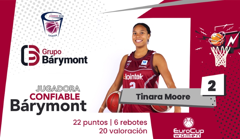 Tinara Moore ha sido la jugadora más confiable Barymont de la sexta jornada de la Eurocup Women. El Grupo Barymont es la empresa líder en educación, planificación y gestión financiera del país. Tinara Moore anotó 22 puntos y capturó 3 rebotes para un total de 20 créditos de valoración en la derrota del Lointek Gernika Bizkaia ante Flammes Carolo.