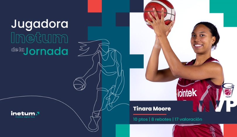 Tinara Moore izan da Emakumezkoen Endesa Ligako 22. jardunaldiko Inetum jokalaria. Pibotak 10 puntu sartu zituen eta 8 errebote jaso zituen, guztira 17eko balorazioa, Casademont Zaragozaren aurka.