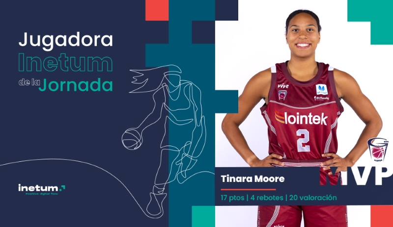 Tinara Moore izan da Emakumezkoen Endesa Ligako seigarren jardunaldiko Inetum jokalaria. Pibotak 17 puntu sartu zituen eta 4 errebote jaso Movistar Estudiantesen aurka. Garaipena eskuratzeko funtsezko izan zen estatubatuarraren lana, horregaitik Lointek Gernika Bizkaiako jokalari onena izan zen.