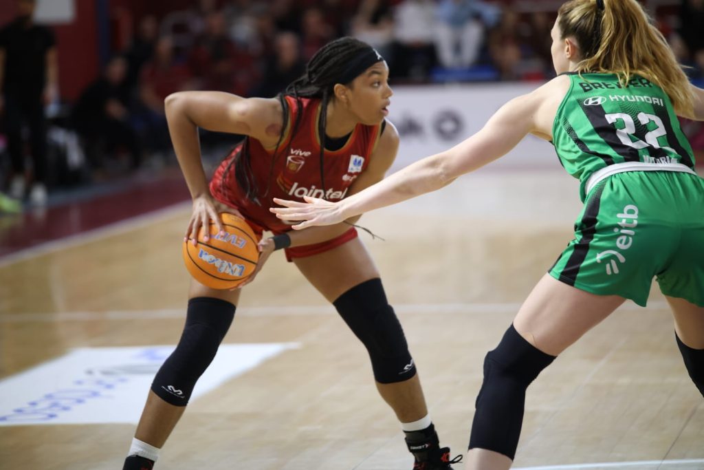 Era un derbi por el rebote ofensivo, dos de los mejores de la competición en ese aspecto. Y es que el que conseguía dominar los rechaces tenían mucho ganado a la hora de poder correr y encontrar canastas más sencillas ante los problemas en el juego a media pista. El Lointek Gernika Bizkaia no encontraba su ritmo y ni tan siquiera con el tiempo muerto de Lucas Fernandez se paró la sangría. 16-24 a favor de las visitantes y sobre todo falta de dominio local. Incluso Laura Westerik tuvo que entrar con dos faltas personales en su casillero. Dos triples, uno de ellos de la neerlandesa acercaron de nuevo a las vizcaínas. Aunque no tardó mucho la alegría, tenían problemas para controlar las penetraciones exteriores de las de verde.