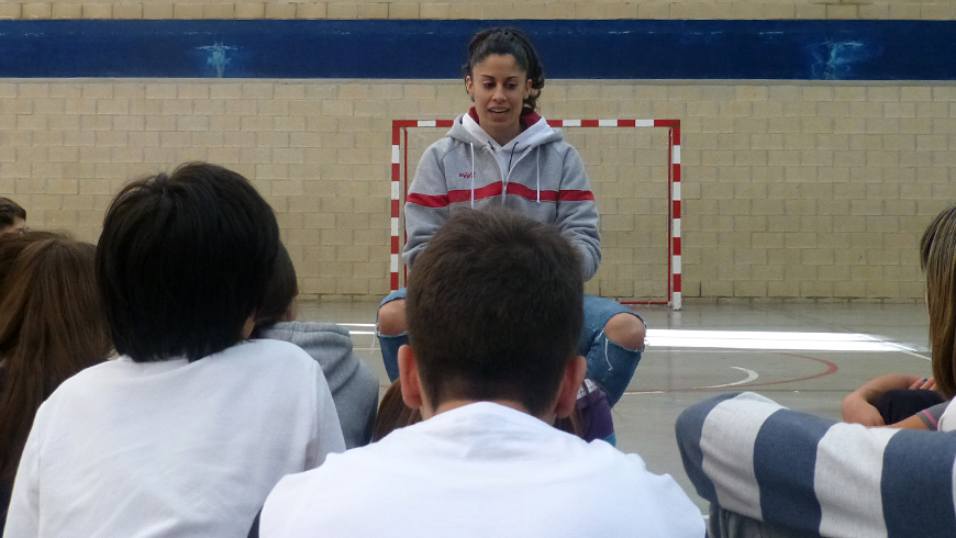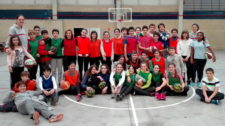 Arrancó la semana en Seber Altube y este jueves ha continuado en San Fidel Ikastola. A este también mítico centro del que han salido muchas jugadoras del Gernika KESB acudieron la capitana Naiara Díez y el techo del equipo, Sandra Pirsic. Ambas compartieron con más de una treintena de niños y niñas sus conocimientos de baloncesto y también sus experiencias profesionales.