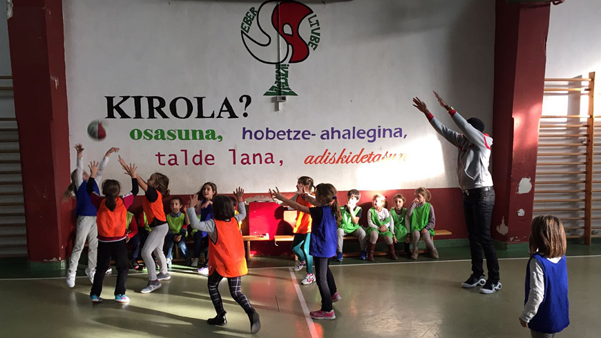 El recorrido por los colegios de Gernika ha comenzado en una de las principales canteras del Gernika KESB, la Ikastola Seber Altube. Hasta allí se acercaron jugadoras de la plantilla de Liga Femenina, en concreto, María Asurmendi, Izaskun García y Amisha Carter.